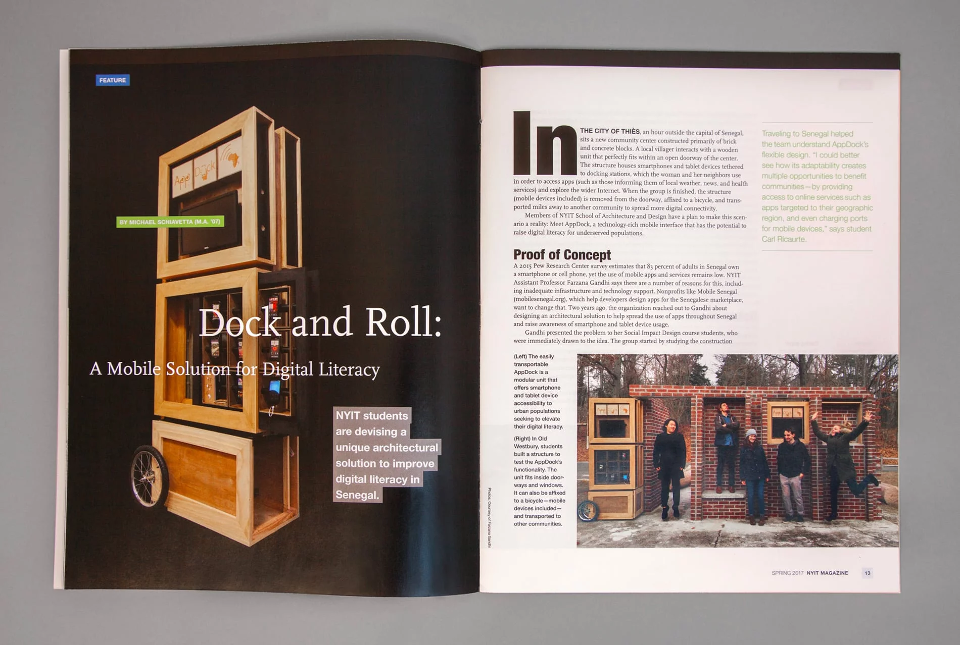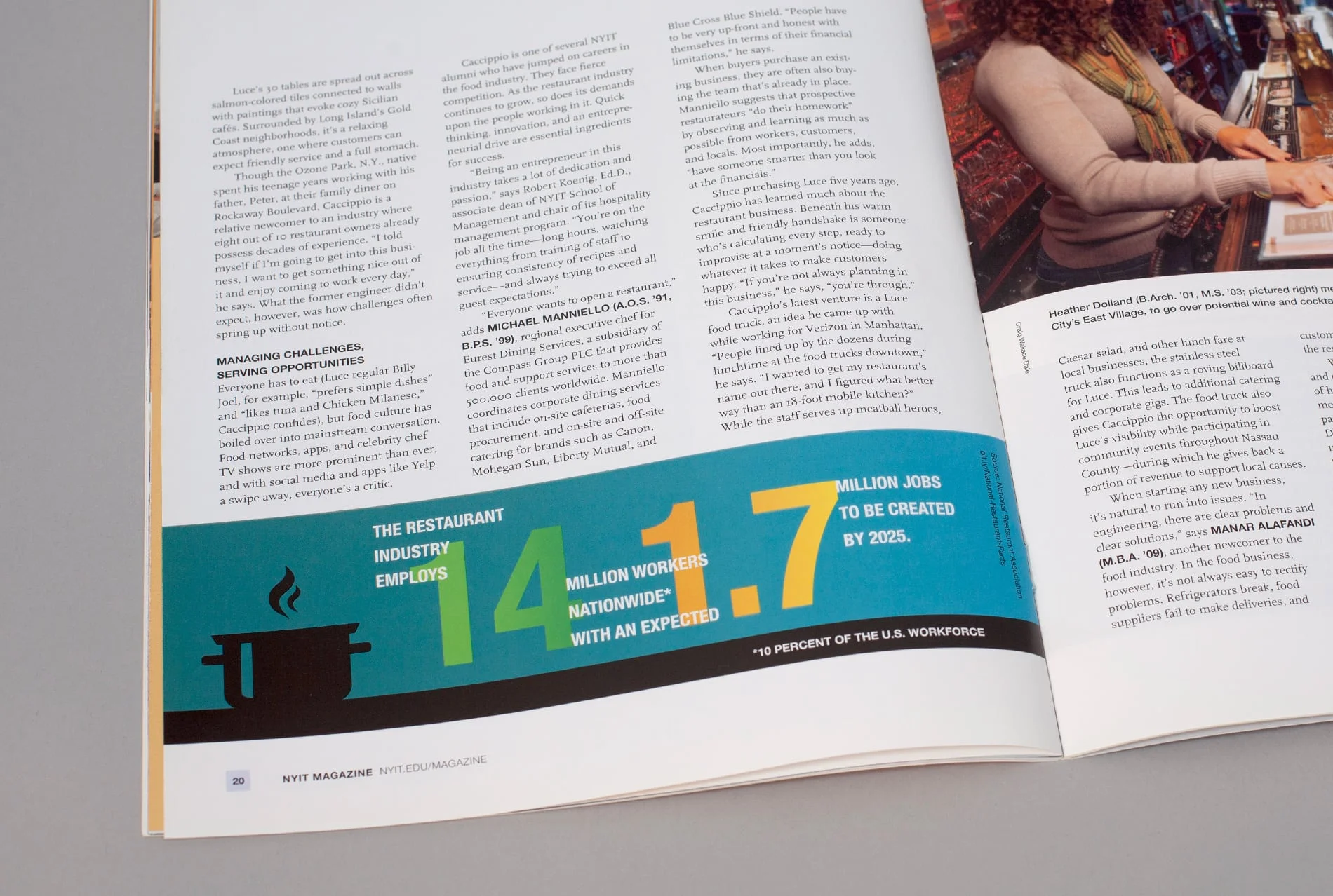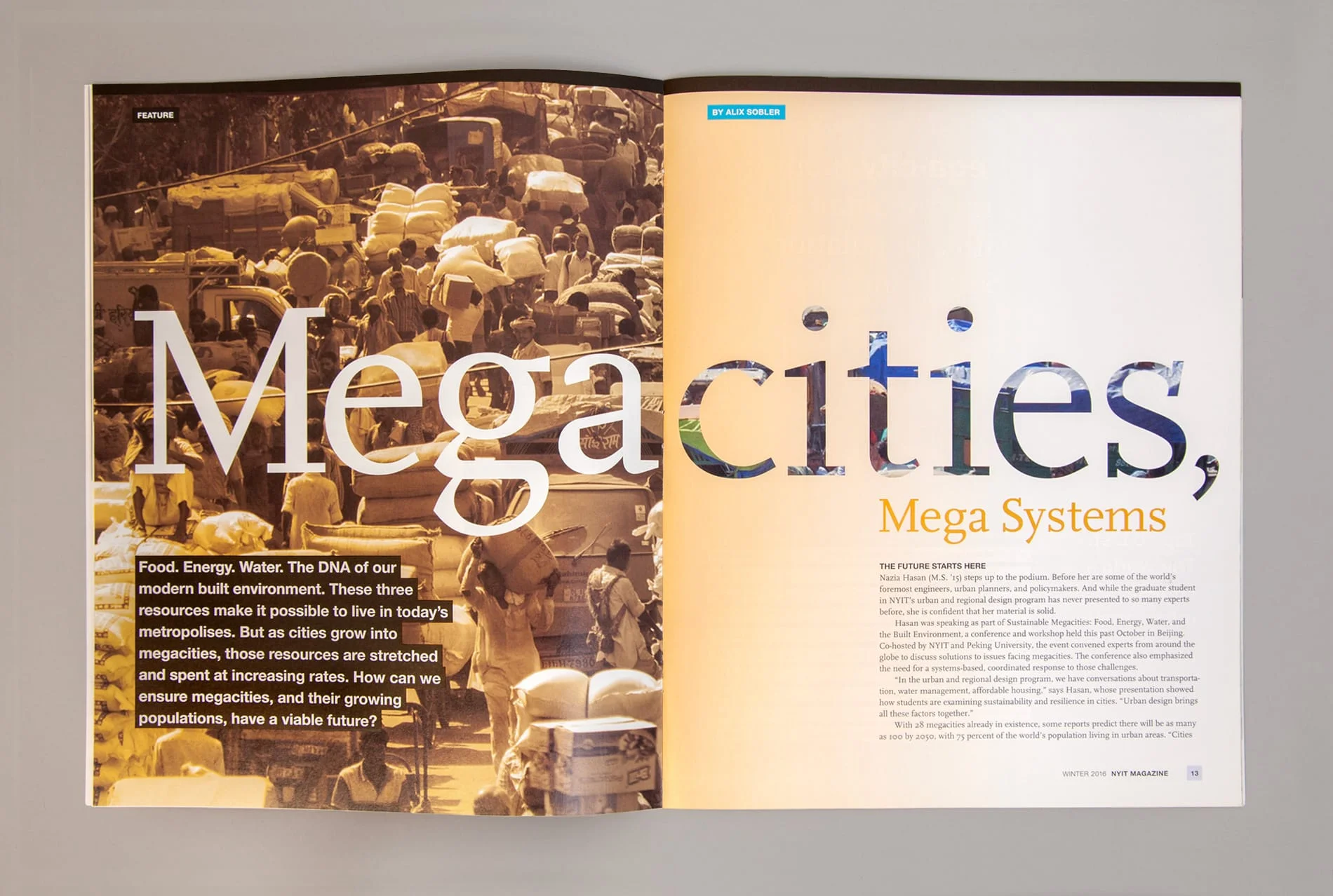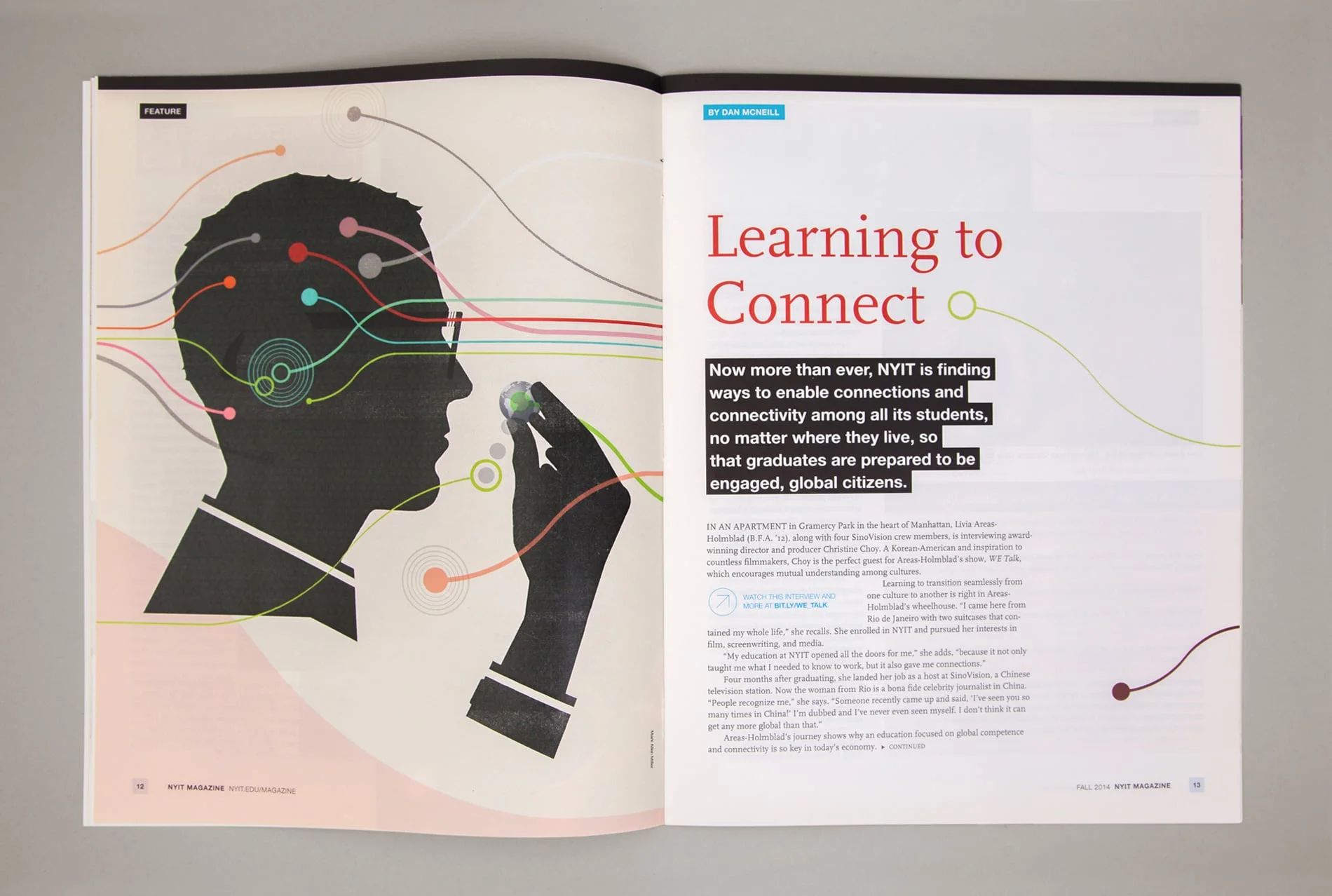 One of NYIT’s most important tools for outreach to its alumni is NYIT Magazine, published three times a year. The publication was in need of a radical update to compete with alumni magazines from other schools in the marketplace. Not only was the design outdated, but a new, progressive approach to written content required a contemporary presentation. The magazine needed to expand in order to better connect with alumni and appeal to current and prospective students and parents. It also needed to function as a fundraising tool to encourage alumni giving, and to entice corporate partners by proving to them the value of backing such an organization.