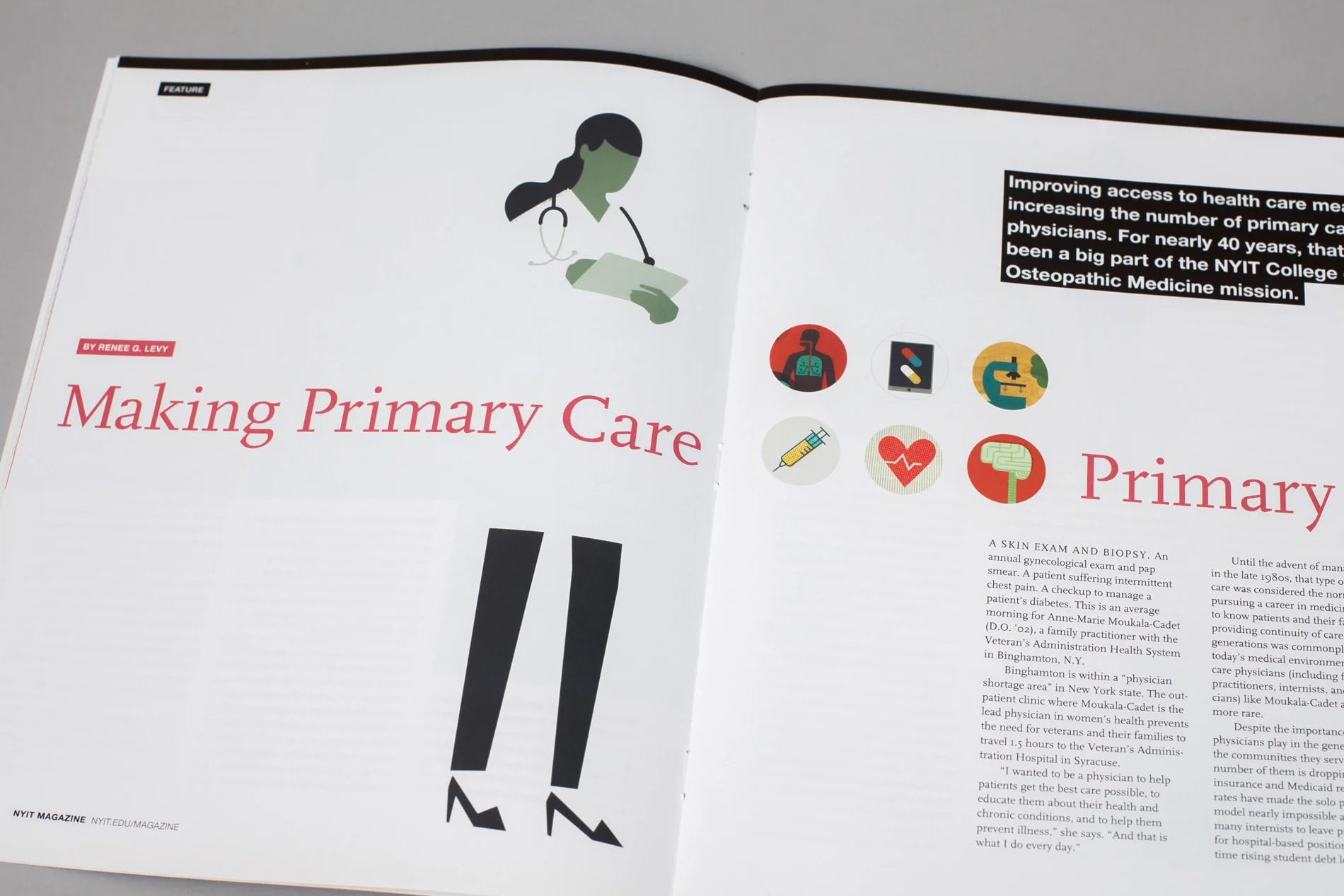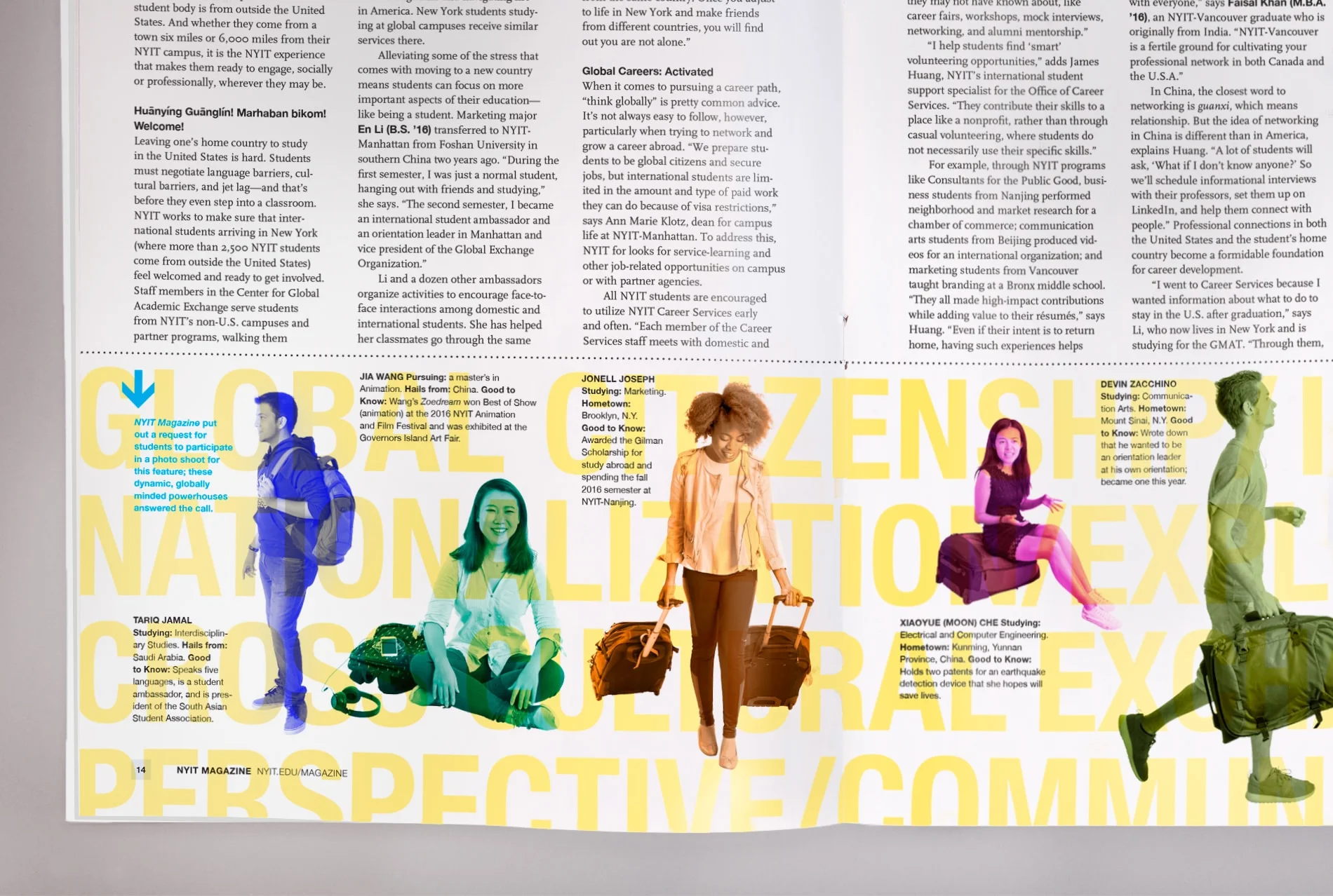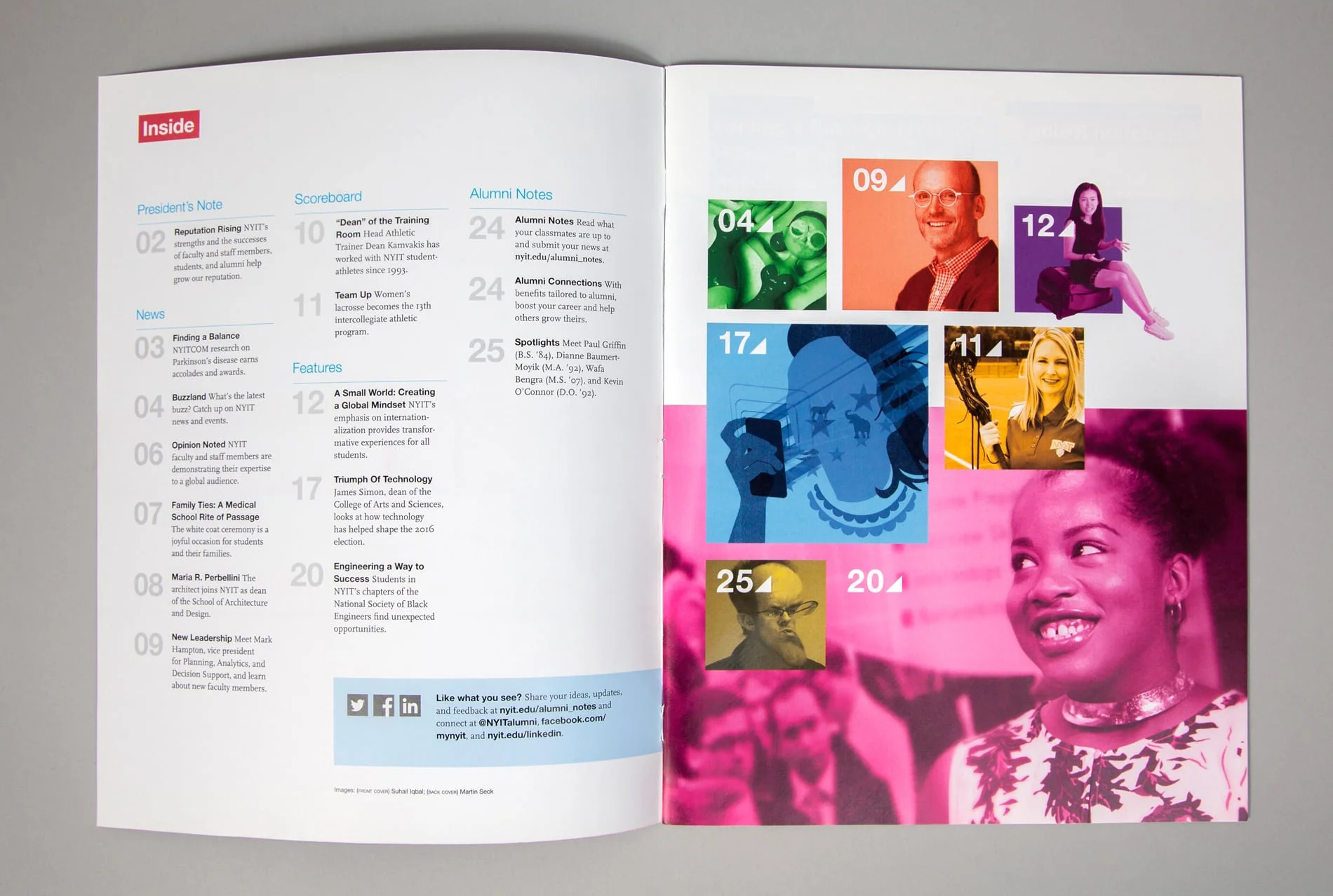 • I addressed photographic subjects and aesthetics by creating a style guide to inform professional and amateur photographers about the “NYIT Magazine look” — images of people interacting with one another in dynamic yet authentic ways.