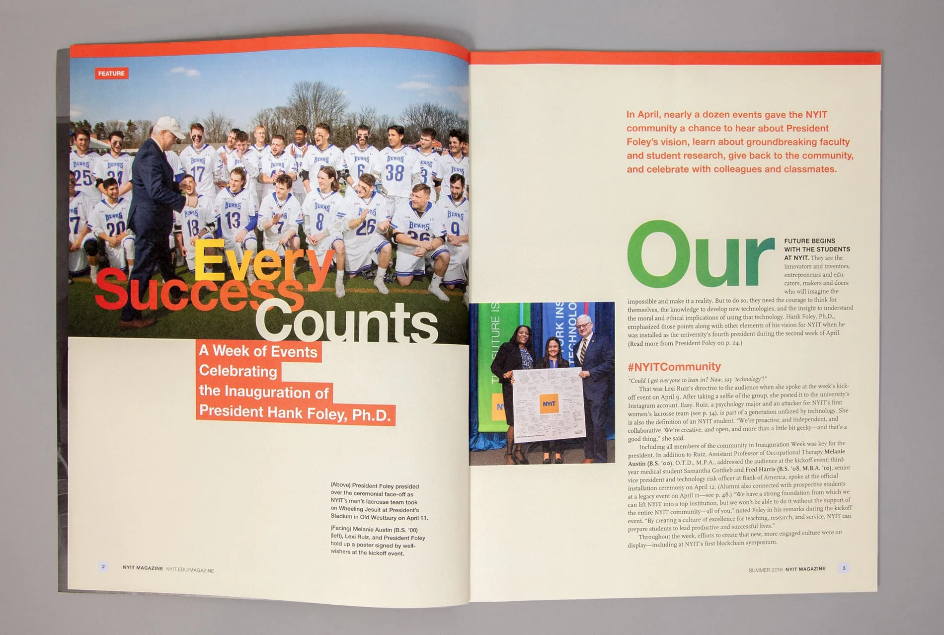 In reader surveys, 93% of magazine recipients favored the redesign. The new design helped raise NYIT’s profile as a progressive institution fostering world-class, forward-thinking education. The magazine can now more effectively share stories of how graduates have become leaders in their fields and made an impact — and invite prospective students to do the same. It has become an essential tool for fundraising, recruitment, and alumni, student, and staff relations.