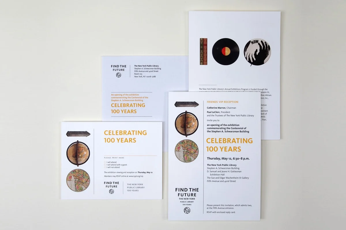 The New York Public Library pulled out all the stops to mark the 100th birthday of the Stephen A. Schwarzman Building, the main library building at 42nd Street and 5th Avenue, the “crossroads of the world.” The celebrations would culminate with a three-day city-wide festival. A versatile and adaptable visual identity was required for use in a wide range of promotional and branding applications.